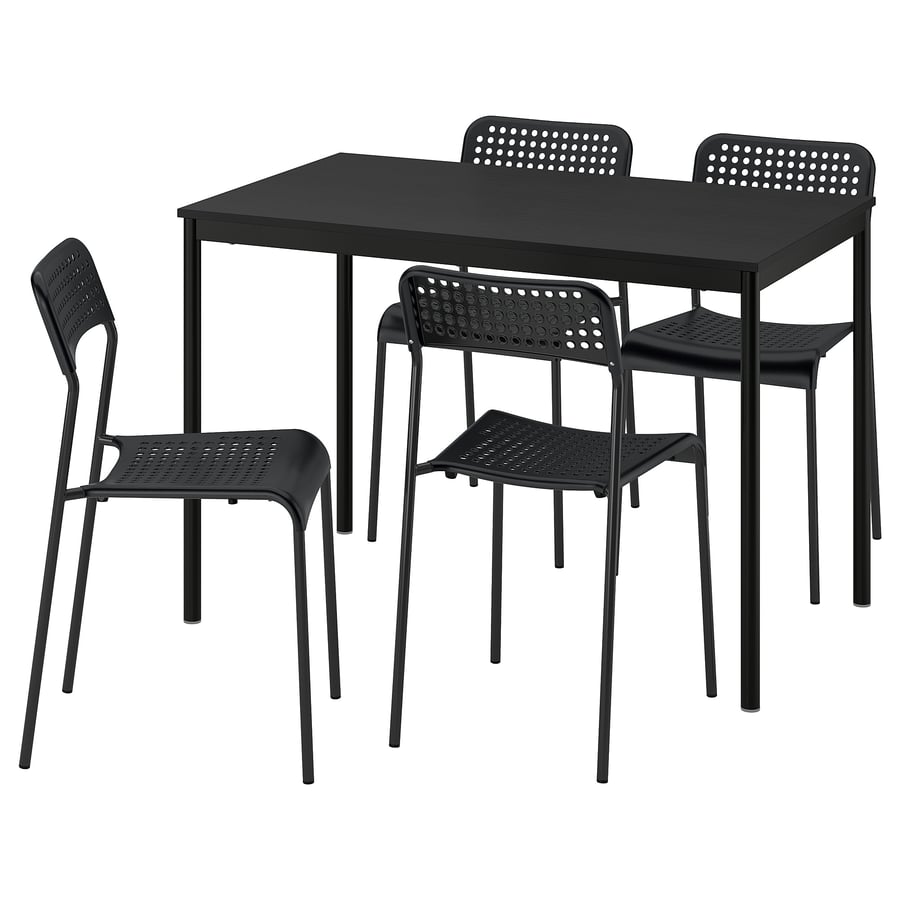 - Table et 4 chaises, noir noir/noir, 110x67 cm